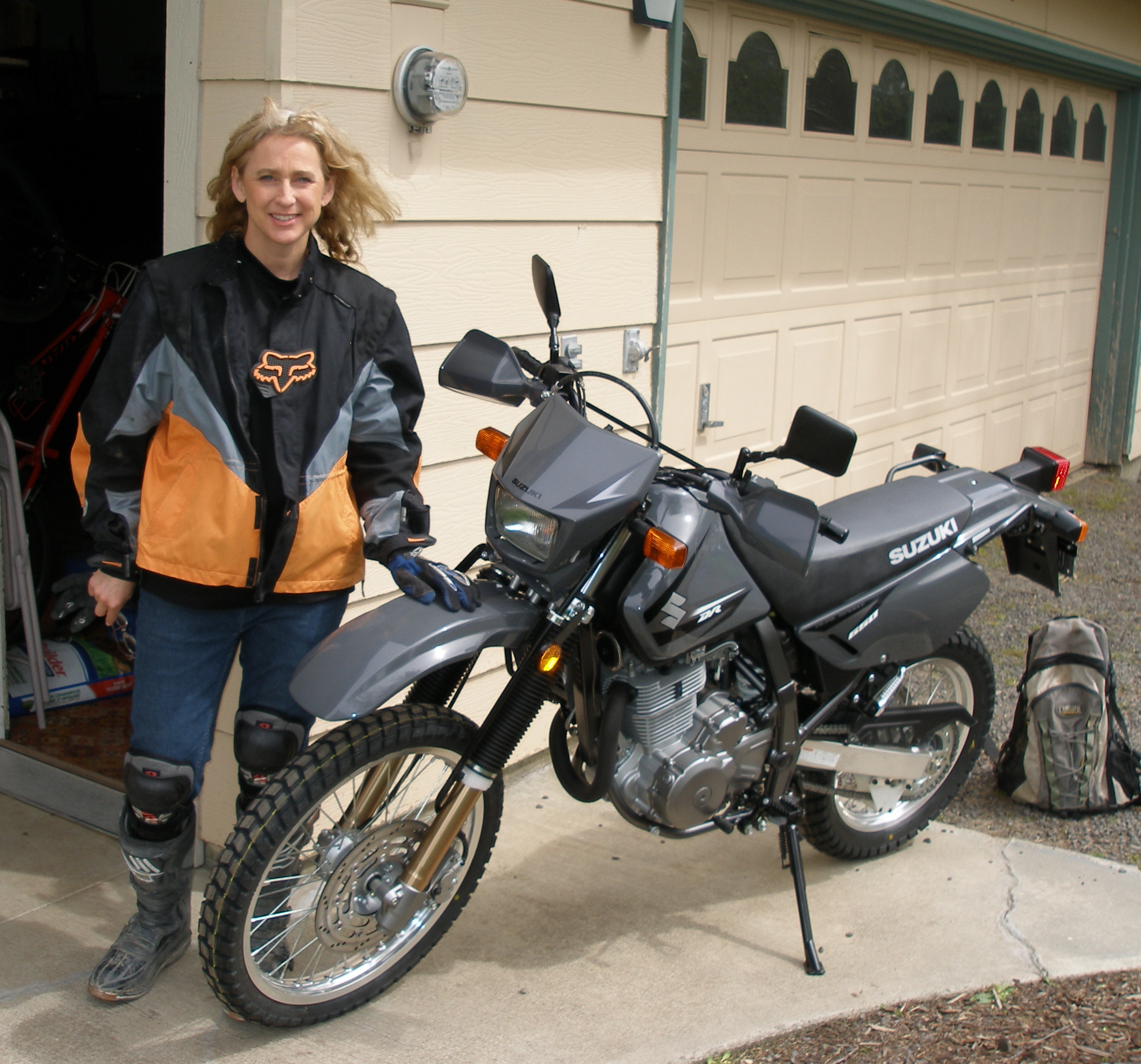 I nervously saddled up for my first ride on my Suzuki DR650SE dual sport motorcycle. My husband’s backup plan―if the motorcycle riding isn’t my thing―will be an economical commuter for him. My twelve year-old also assures me that he can ride it if I crash.